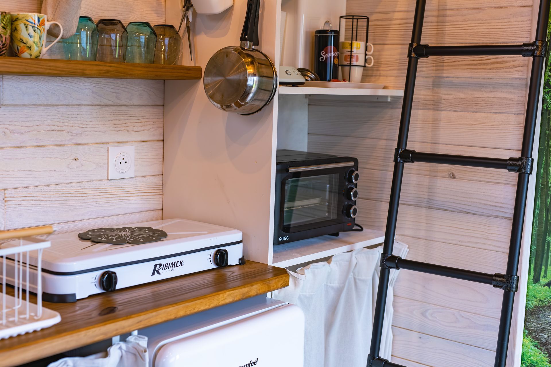 Notre tiny house offre un intérieur chaleureux et fonctionnel, idéal pour une nuit insolite ou un séjour détente en Baie de Somme.